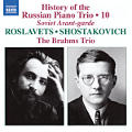 Die nunmehr zehnte Folge der auf 15 CDs angelegten Anthologie „Geschichte des russischen Klaviertrios“ mit dem aus Professoren des Moskauer Konservatoriums gebildeten Brahms Trio widmet sich der sowjetischen Avantgarde der 1920er Jahre und mit Schostakowitschs zweitem Klaviertrio (1944) einem der meistgespielten Gattungsbeiträge des gesamten 20. Jahrhunderts.
